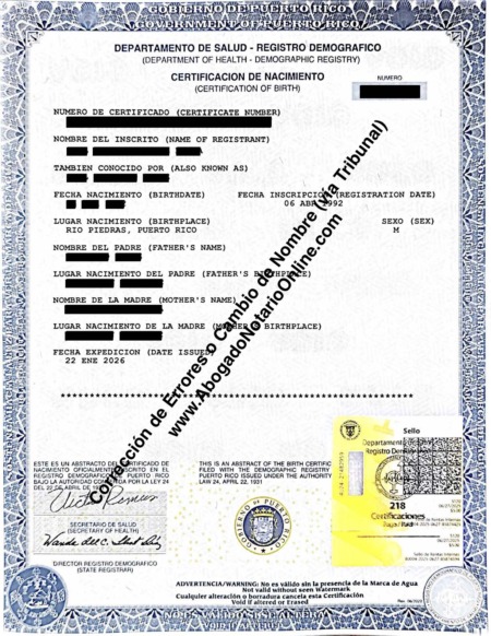 Este documento: Corrección de Errores o Cambio de Nombre (Vía Tribunal)